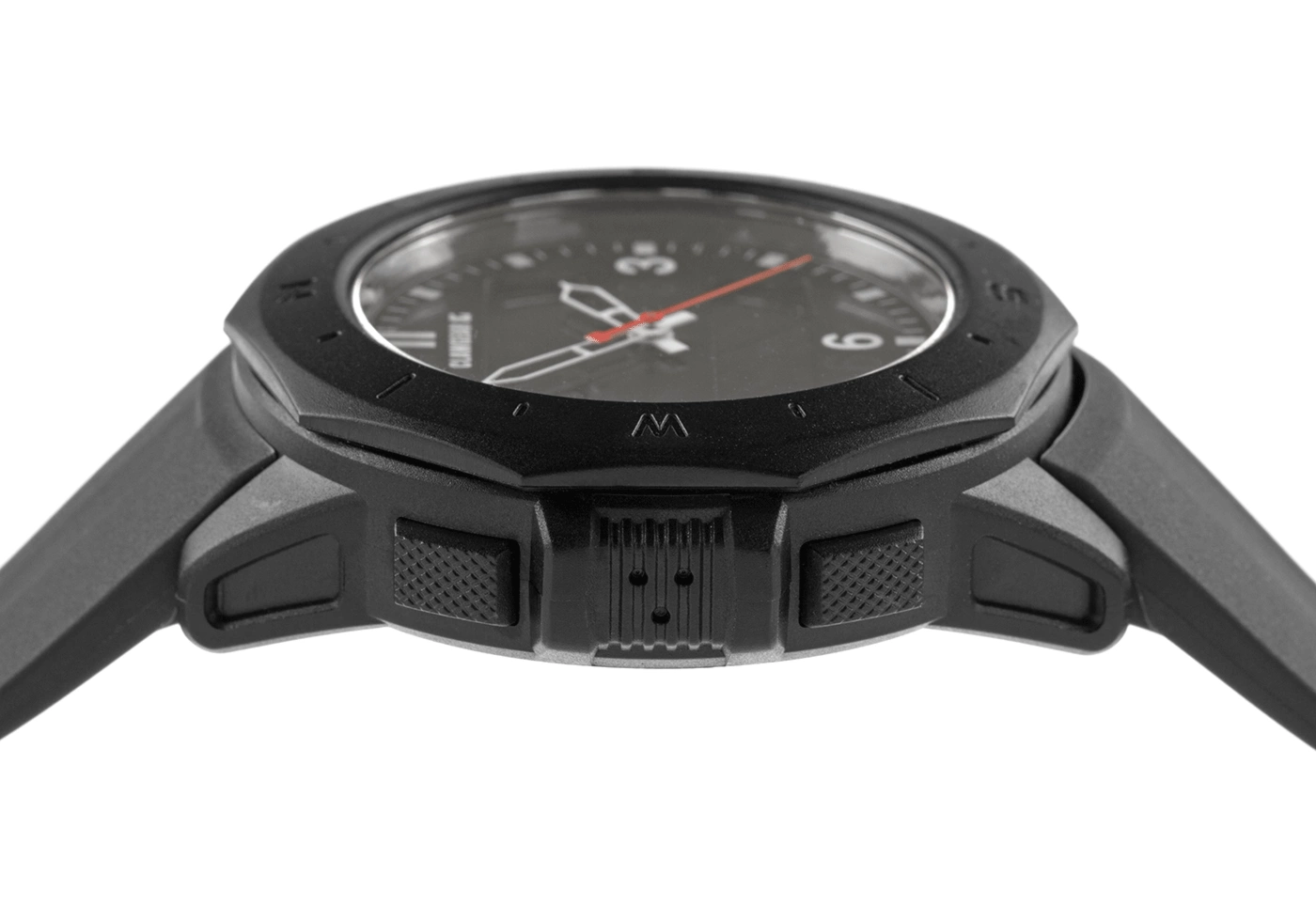 Featuring high-density polycarbonate case, black-ops design without any reflective metal parts, digital compass, world timer, alarm mode, chronograph and many more.