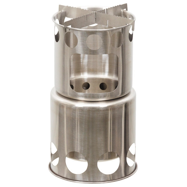 Kuchenka (20 × 11 cm) – kompaktowa, składana konstrukcja z 5-częściowym stojakiem na garnek, zapewniająca stabilność podczas gotowania.