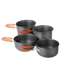 Anodyzowane aluminium i stal nierdzewna to gwarancja solidności i trwałości każdego elementu zestawu. Duży garnek, mały garnek, przykrywki/naczynia - wszystko, co potrzebne do udanego gotowania na świeżym powietrzu, znajdziesz w tym komplecie.